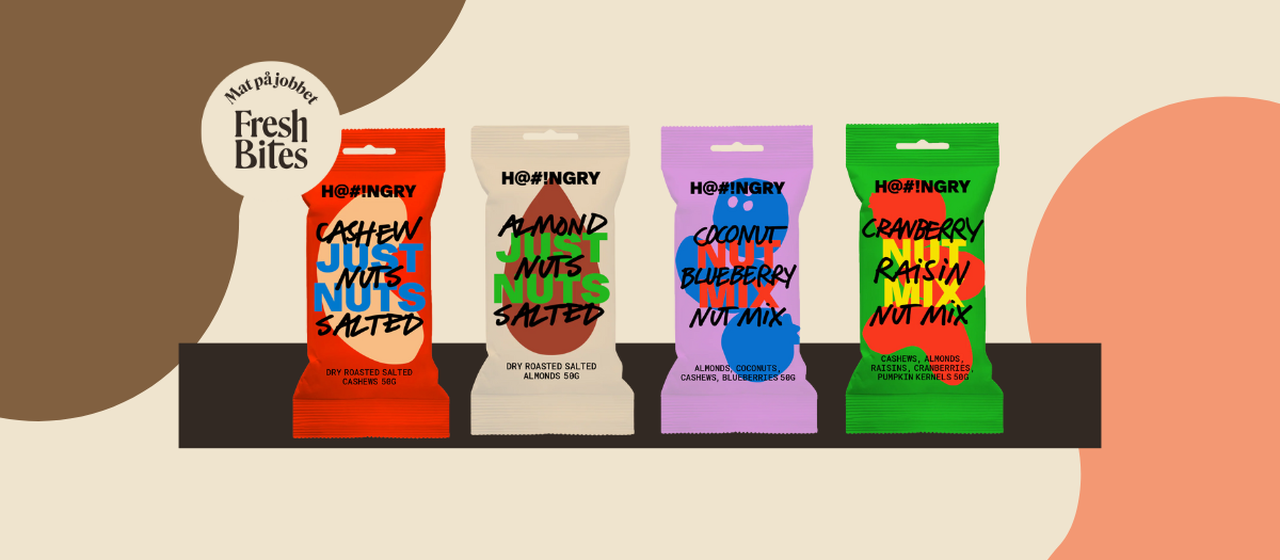 Nästa gång du går förbi vår Fresh Bites-kyl, håll utkik efter de färgglada nötpåsarna från Hangry . Ge dig själv en liten paus med omtanke – och gå från hangry till happy på nolltid.